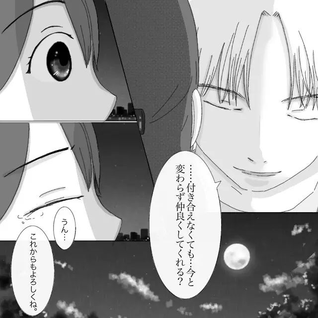 「付き合えなくても、今と変わらず仲良くしてくれる?」そう言ったレン君。私は「うん・・・これからもよろしくね」と、フラれたショックを隠すように笑って返事をしました。恋は実らなかったけど、これからもレン君のそばにいられる・・・それだけで十分幸せだと自分に言い聞かせました。