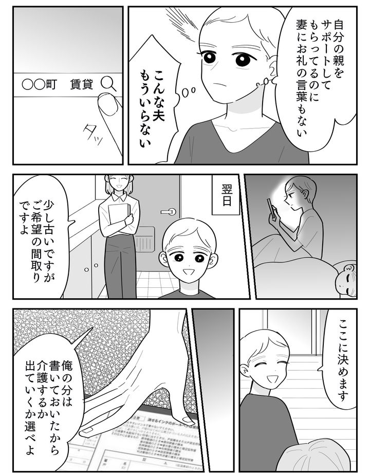 <同居、介護の強要>覚悟を決めて、スパッと決行「もう夫いらない」引っ越し引っ越し【まんが】