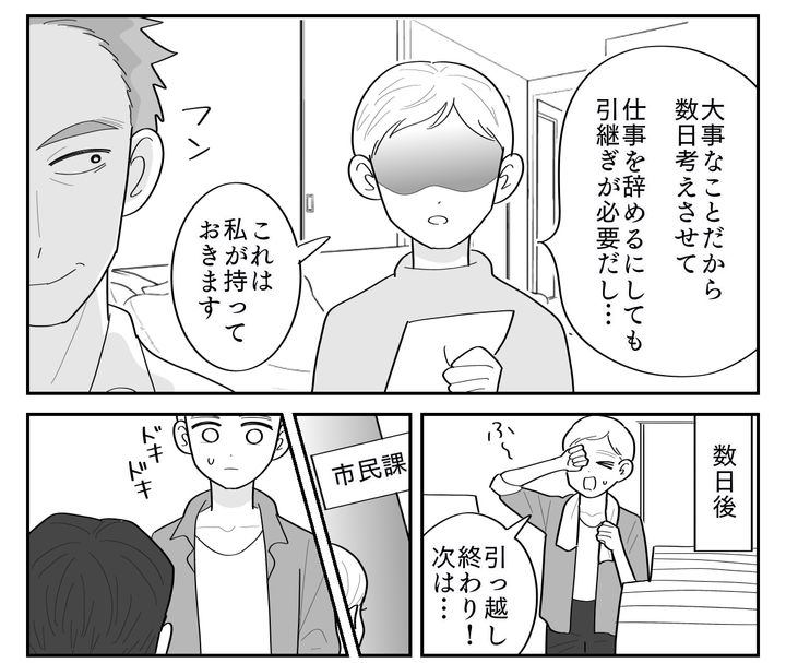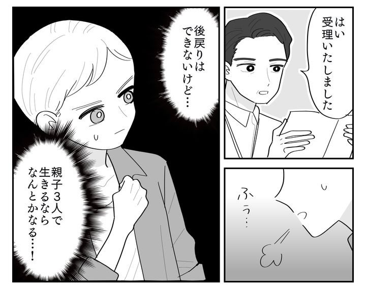 そして数日後。私は有休を取ってレンタカーを借り、独身時代から持っていた家電や持ち物、子どもたちの荷物などを運びだしました。離婚届の証人欄も職場の人にお願いして準備していたので、その日のうちに役所に提出しました。もう後戻りはできません。