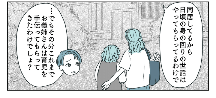 夫は「姉ちゃんは母さんと同居しているから日頃の身の回りの世話をしてもらっている」と言いますが……。