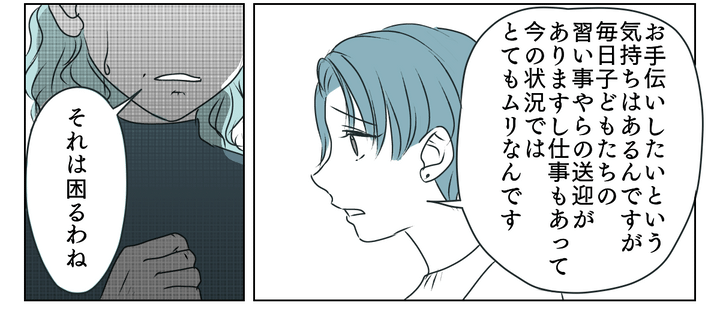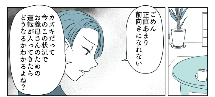 夫は、義母のための運転を分担することでわが家が回らなくなることがわかってはいるものの、きょうだいだから姉1人に負担させるわけにもいかないと言います。