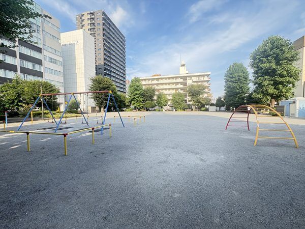 街中でビルやマンションに囲まれつつも広々としている事がこちらのお写真からお分かりいただけますでしょうか。エネルギッシュな子ども達が走り回れる広さがあると親としては心強いです!