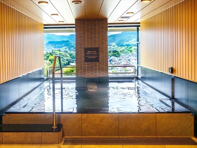 今回のリニューアルで誕生した半露天風呂は、室内でありながらも壁の一面がないため、天候を気にせず直接外気に触れることができます。山々を見渡しながらゆったりお湯に浸かれば、日頃の疲れも癒やされそう。