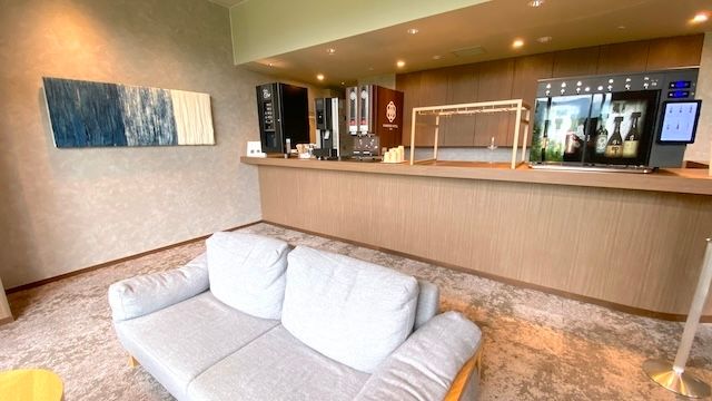 ロビー横には宿泊者限定でコーヒーやソフトドリンクが無料で飲めるラウンジ。有料となりますが、お酒も楽しめます。このエリアにはワンちゃんは入れません。