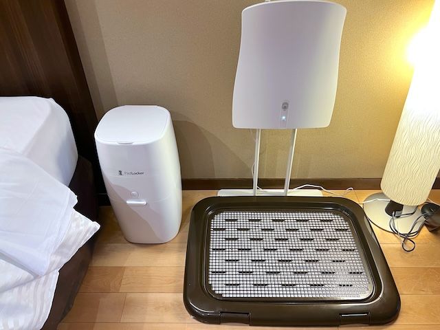 お散歩バッグに入っていたのは、粘着ローラーと消臭剤、ペットシーツとペット用消臭マナー袋が各2枚。足りなくなったらスタッフさんにお願いすれば補充してもらえます。