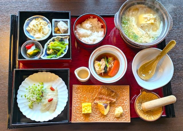 朝食にいただいたのは、お重に入った色とりどりのメニュー。お魚やお野菜、お肉までバラエティ豊かなおかずがラインナップしています。