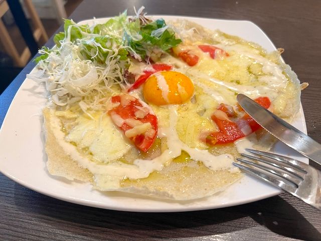 ガレットやハンバーグ、パスタなどの洋食やケーキなどのスイーツなど多彩なメニューが並びます。いただいたものはどれも丁寧に作られたあたたかな味。筆者の訪ねた日は平日でしたが、ワンちゃんを連れていないお客さんも多く満席に近かったので、予約をしてから行くのがおすすめです。