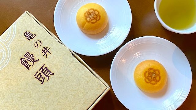 北海道産のブランド小豆とバターを使った、売店の一番人気「亀の井饅頭」。バターの風味が効いていて、饅頭というよりはホットケーキのような味わいのスイーツでした。