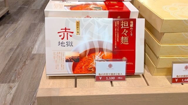 宿泊者限定で提供される「地獄めぐり担々麺」赤地獄がお土産に。パッケージの真っ赤なスープが食欲をそそります。