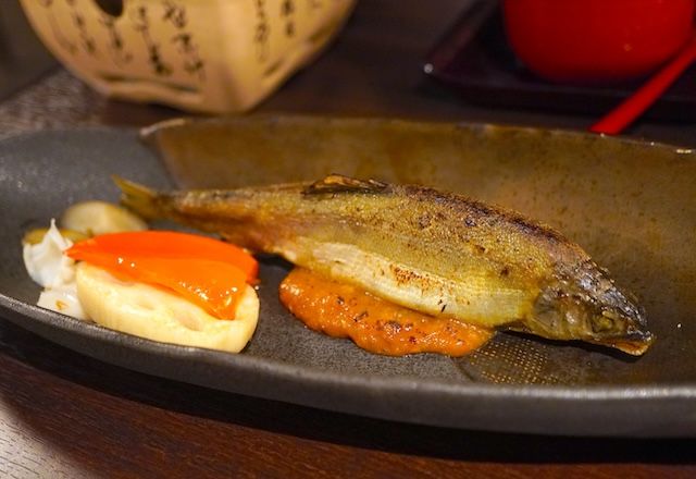 こちらは焼き子持ち鮎。子持ちししゃもはよく食べますが、子持ち鮎ははじめていただきました。