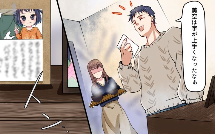 夫はのんきなタイプなのでしょうか。連名の年賀状を気にする素ぶりを見せず、娘からの年賀状を飾りだす始末。