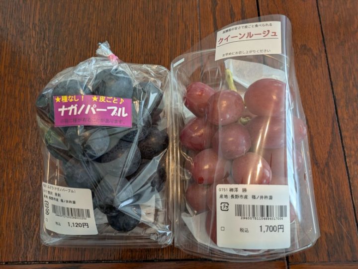 ひとつ目は『ナガノパープル』。これは巨峰とリザマートの交配品種で、巨峰の派生なだけあって甘みが強く、おいしいんです。もうひとつは私の最近のお気に入りになっている『クイーンルージュ』。栽培されているのは長野県のみで、ユニコーンとあのシャインマスカットの交配品種なんですよ。シャインマスカットのさっぱりとした甘みに濃厚さが加わって、とてもおいしくてハマっています♡みなさんも見かけたらぜひ一度食べてみて下さい!
