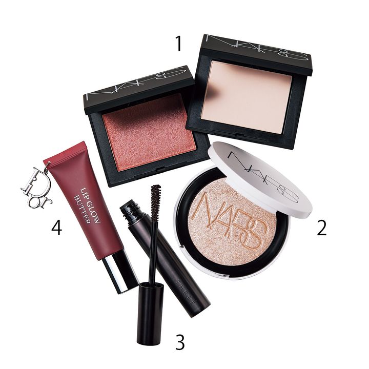 1.内から湧き出るような柔らかなピーチカラー。NARS ブラッシュ N 958、天然由来のピグメントが肌の粗をぼかして美肌に。目の下のたるみなどをフラットに演出。同959 各¥5,060