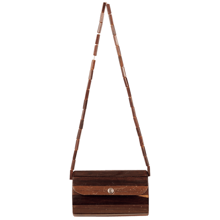 木製のショルダーバッグだなんて、今ではなかなかお目にかかれない? ★バッグ¥7,400(ムード)