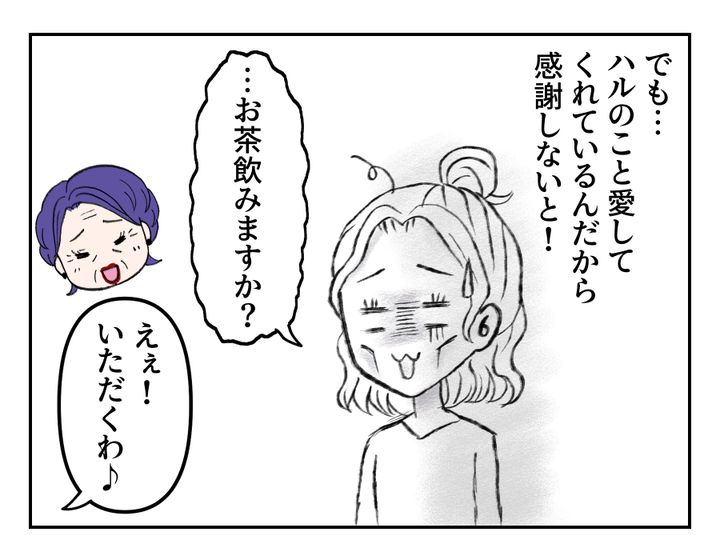 しょっちゅうハルちゃんに会いに来るお義母さんに対して、負の感情を抱いてしまっていたリホさん。でもすぐにそんな思いを打ち消そうとします。お義母さんのハルちゃんを愛する気持ちに悪気はないのです! ハルちゃんを大切に思ってくれる人の気持ちは大切にしたい……お義母さんを受け入れていたのは、すべてはハルちゃんのため。しかしリホさんには、お義母さんが呼んだ「ママ」という言葉がなんだか引っかかってしまったようです。