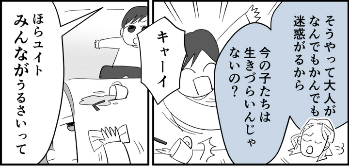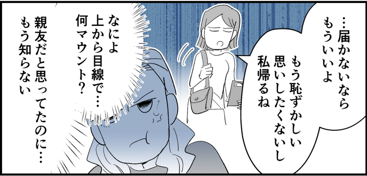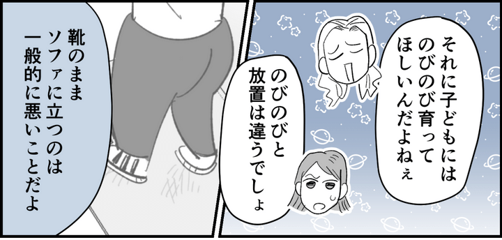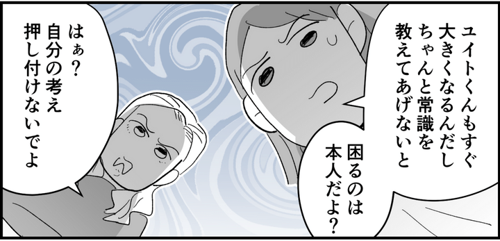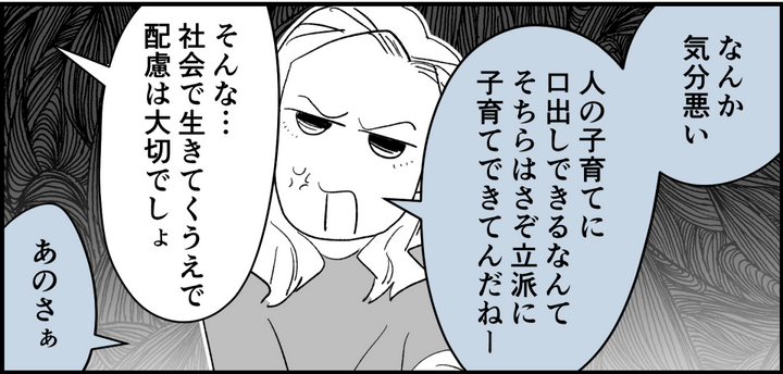 私には私の考えがあって子育てをしているのに……ユカにいろいろ言われ、上から目線で説教されているように感じてしまいました。ちょっと子育ての方針が自分と違うからって、そんな風に人の子育てを否定するような言い方をしなくてもいいのにと思ってしまいます。だんだん腹が立ってきました。