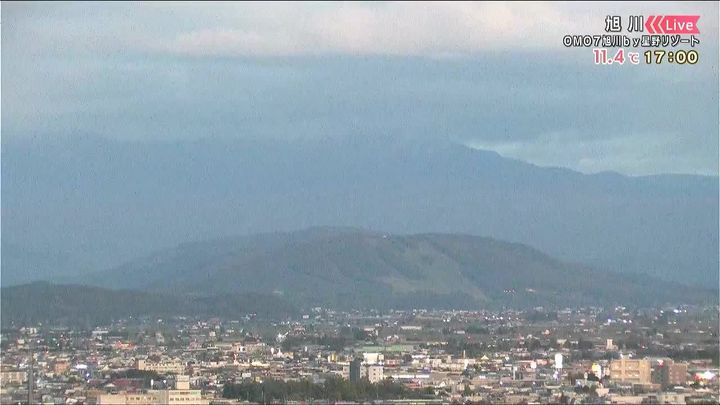 旭川の様子を見てみましょう。山の上には雲がかかっていますね。