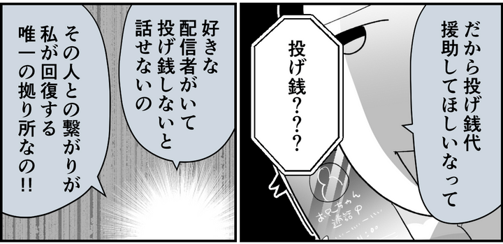 3. <義妹、投げ銭ビンボー>推し活、援助金を両親にお願い⇒「ムリだよ」【まんが:義妹の気持ち】