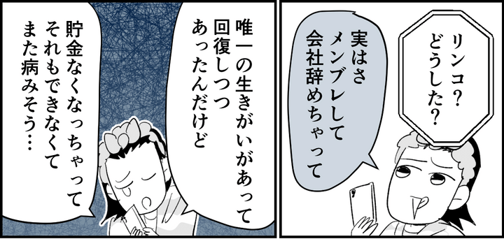 私はリンコ。ブラック寄りのグレー企業で働いていた派遣社員です。SNSの配信者に夢中になった私。仕事中に配信を見逃すのが嫌で、契約更新を機に会社を辞めました。家事は両親がやってくれますし、貯金があるのでしばらくは安泰だと考え、1日中彼の配信を見ては高額な投げ銭をする日々「人生の夏休み」を満喫していたのです。両親も私が精神的に参っていると思い、献身的に世話をしてくれました。しかし、半年も経たないうちに貯金は底をつきかけ、私は青ざめることに。今の生活を続けるためには、誰かに頼るっきゃありません!