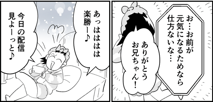 配信が見られなくなるとパニックになった私を見て、両親は兄に相談するよう私に提案。