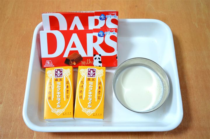 森永製菓の公式Instagramが2024年に公開したレシピの中で、“いいね“を最も多く獲得した「とろっとろのキャラメルボンボン」。これがとってもおいしそうだったので、挑戦してみました!!使う材料は、お馴染みの「ダース」と「ミルクキャラメル」、そして生クリームのたった3つだけ。それでパリパリとろ~りの紙食感が叶うらしいのですが…?さっそく作ってみましょう!