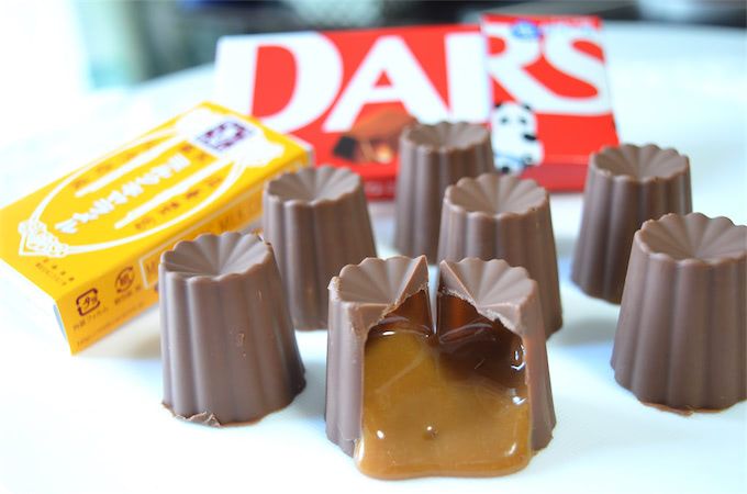 「ダース(ミルク)」と「森永ミルクキャラメル」で作る「とろっとろのキャラメルボンボン」。