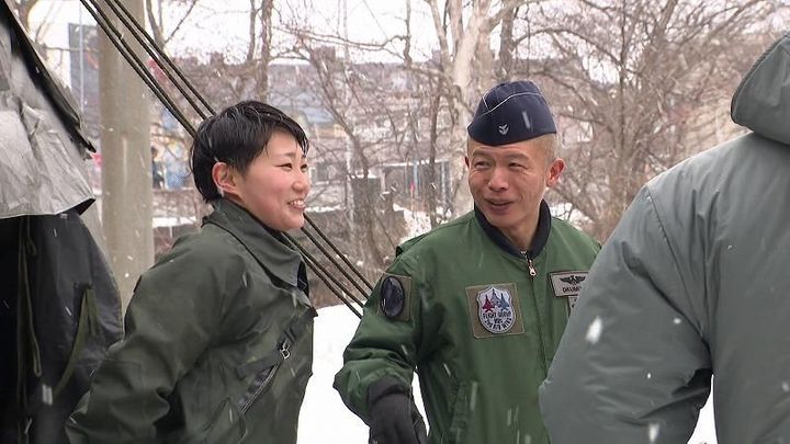 北部航空施設隊の田中唯月さんは「公務員を目指していて、自衛官にお勧めされて」とのこと。