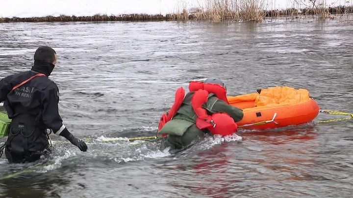 真冬に救命ボートで救助を待つという想定で、この日の気温は2度。