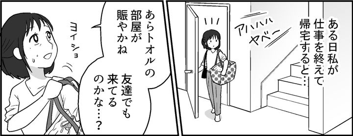 私はミズキ。家族は夫ヒロヤと、大学3年生の息子トオル、そして高校2年生の娘ハナミ。子どもたちが小さいころはパート勤めでしたが、今はフルタイム正社員でバリバリ働いています。最近ではハナミが多忙な私を気遣い、家事を手伝ってくれて助かっています。さてある日のこと、私が仕事から帰るとトオルの部屋から賑やかな声が……。トオルはたまに大学の友だちやバイト仲間を連れてくることがあります。いつものことだと思い、私は気にせず夕飯の準備をはじめました。