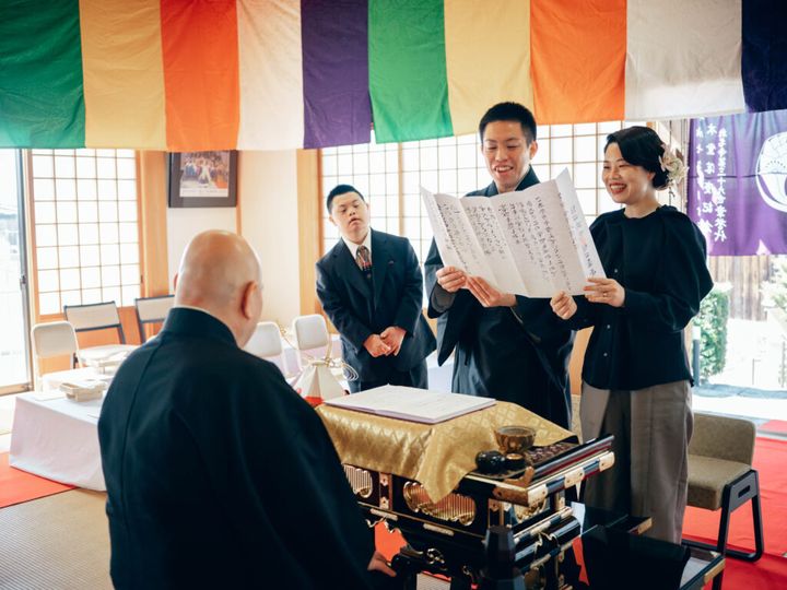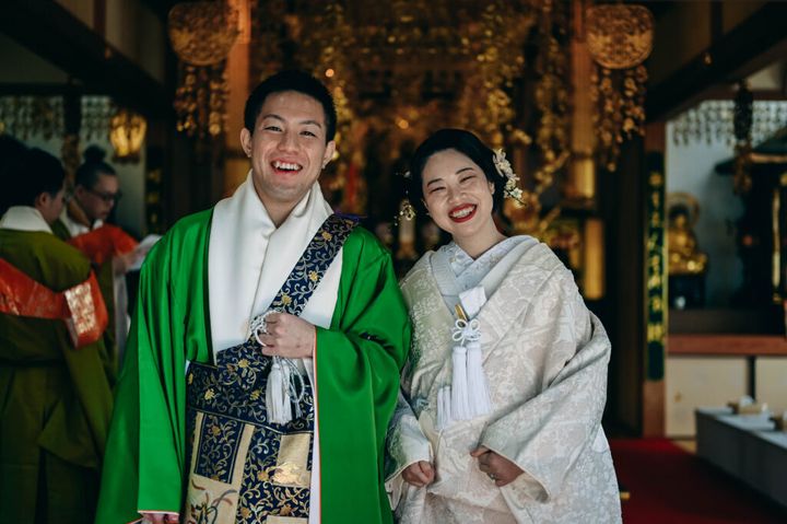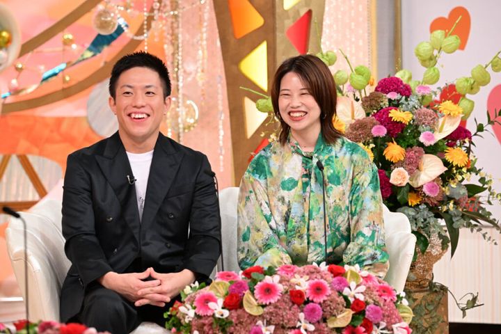 夫妻が結婚したのは、2023年5月。夫は実家のお寺で副住職を務めている。観覧席で妻の弟と母、さらに夫の母が見守るなか、新婚トークが始まった。