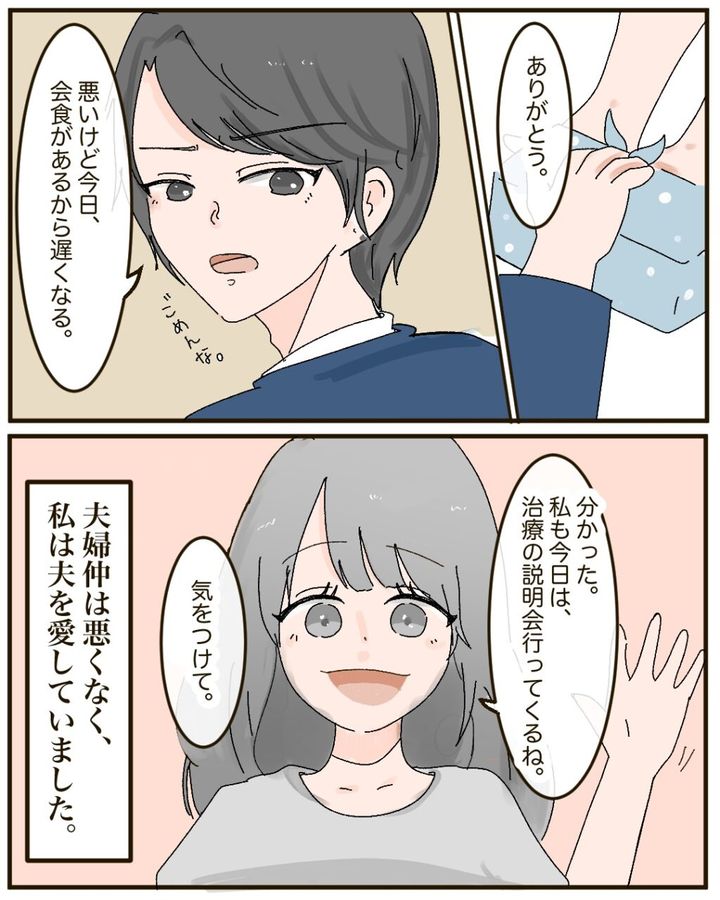 仕事が忙しいつかさの栄養バランスを考えてお弁当を作り、夜遅くまで頑張るつかさを笑顔で見送る毎日。夫婦仲は決して悪くありません。なにより私は夫を愛していました。だからつかさとの子供が欲しくて、不妊治療も頑張っていたのです。