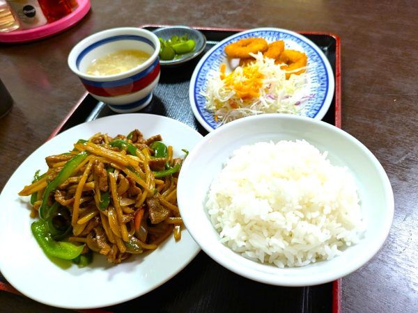 ご飯とスープはおかわり自由です。青椒肉絲もイカリングも玉子スープもご飯に合うおかずだったので、モリモリ食べることが出来ました。