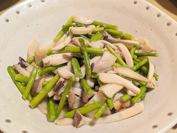 晩ごはんの1品に「エリンギとアスパラのニンニクバター炒め」を追加~!