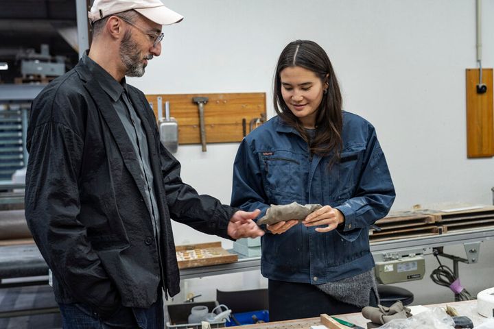 地元のメーカーを訪れ、リサーチを行うノエラーニ・ルッツ。