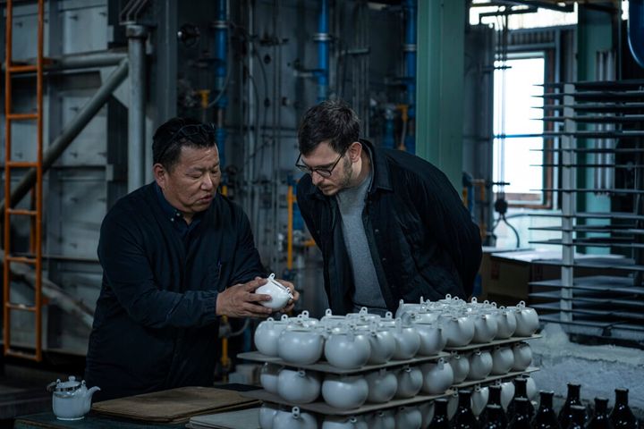 テーブルウェアメーカーで話を聞くアントニー・ゲ。