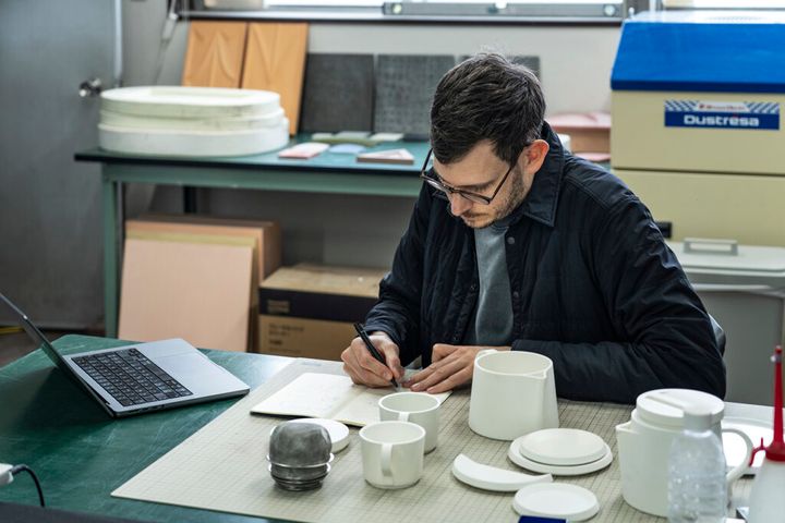 プロダクト/インテリアデザイナーのアントニー・ゲは、テーブルウェアメーカーの「深山」と協働し、テーブルウェアのコレクション《Tea Set》を制作。“繊細で壊れやすいもの”と認識されがちな磁器に密度とボリュームを持たせ、より重厚で彫刻的な一面を引き出すことを試みた。その佇まいはミニマルでありながら、不思議と日常に馴染むもの。