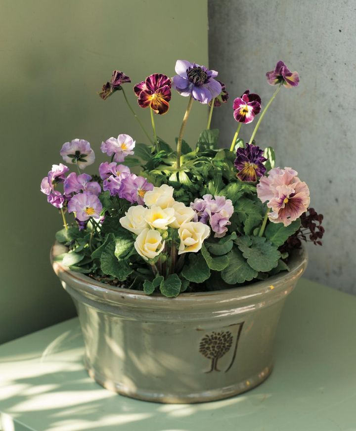 2. ニュアンスカラーの花を春まで楽しむ「アネモネ&パンジー・ビオラ」の寄せ植え【ガーデニング】