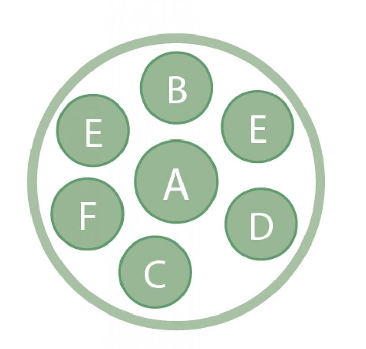 アネモネを中心に、ぐるりと微妙な色違いで集めたプリムラやビオラの寄せ植え。手前には、光を反射し飛び出して見えるミルク色のプリムラを。花と花の間には、暗い色調、銅葉のクローバーをフィリング(隙間埋め)役に、遠近感の演出を意識して。