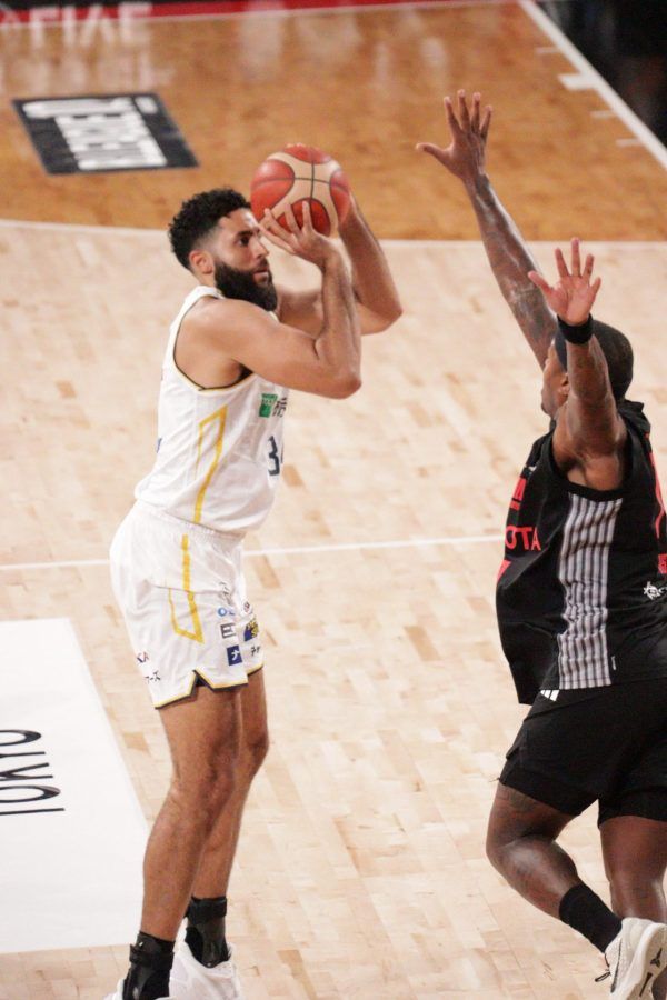 元NBAプレーヤーである#34ジェレット選手は、この日、2本の3Pシュートを決めました。彼は、ダンクシュート、ブロックショットも得意とし、相手チームにとっては脅威の存在です。
