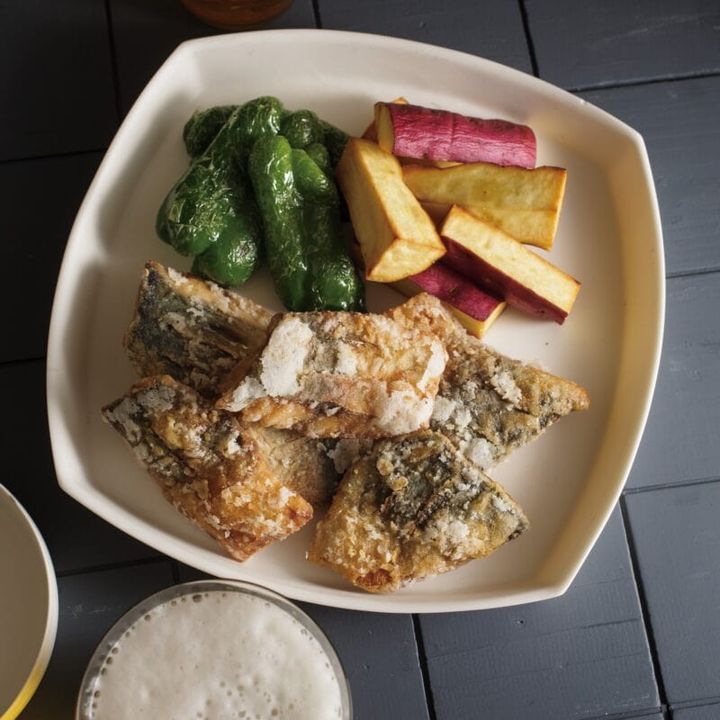 旨みの強い魚をカリッと揚げた、みんなが大好きな定番の逸品。 さつまいもやピーマンも一緒に揚げ、華やかな一皿へ。
