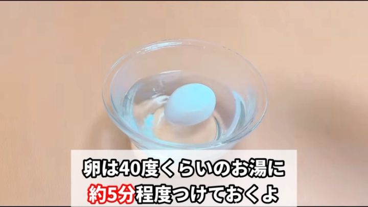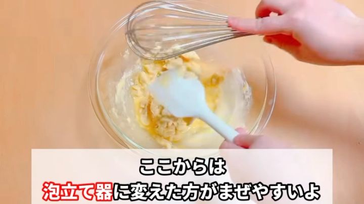 こうすることで、バターと混ぜたときに分離しにくくなりますよ。