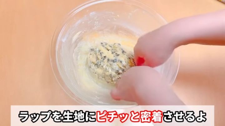 乾燥を防ぐためにボウルの上からももう一度ラップをかけ、そのまま冷蔵庫で約30分~1時間冷やしましょう。時間がない場合は冷やさなくてもOKです。