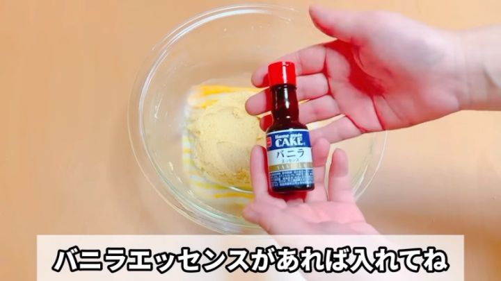 残りの卵を入れてよく混ぜ、バニラエッセンスがある場合はここで加えましょう。
