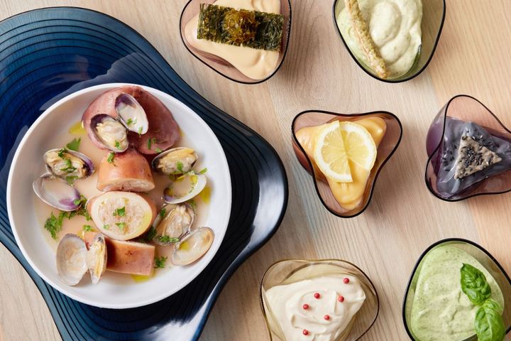 海鮮のうま味たっぷりのスープとぷりっとした食感のイカを味わえて、身体が温まる一品。さらにマヨネーズソースでさまざまな味の組み合わせを試せるのもお楽しみポイント!
