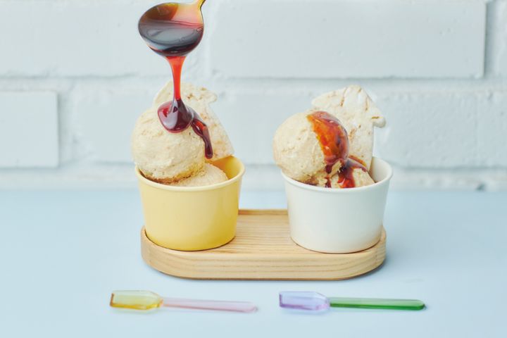 OMOカフェ&バルでは、いかめしのご飯と甘辛いたれの味わいを再現してスイーツにした「いかめしアイス」を提供。「OMO5函館」のご近所さんである、ホームメイドアイスクリーム&シャーベット専門店「冨士冷菓」と共同開発したスイーツで、仕上げにたれをかけ、イカの形の米せんべいをトッピング。源泉掛け流し温泉「琥珀色の湯」の湯上がりにもさっぱりと食べられて、見た目もテンションあがる新感覚スイーツは必食です。