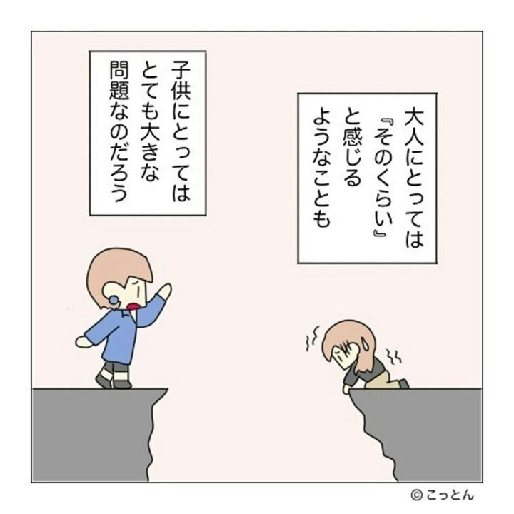 このお話は、著者・こっとん(@amatou_kotton)さんが、自治会での子ども会で自己主張の強い人の言動に振り回されたエピソードが描かれています。中学生になると、心も体もぐんと成長して、見た目には大人と変わらないように見える子もいるでしょう。しかし、実際には彼ら・彼女らの心身はまだまだ成長途中。大人が思うよりずっと繊細でずっと傷つきやすいものです。だから、大人なら「そんなことで?」と思えることでつまずいたり転んでしまったりして、起き上がるまでに随分と時間がかかることも。もし、わが子が日常生活を過ごすのにも大変な時期がやってきたら、保護者としてできることはどんなことなのでしょうか。