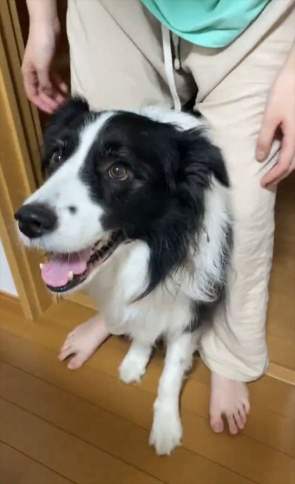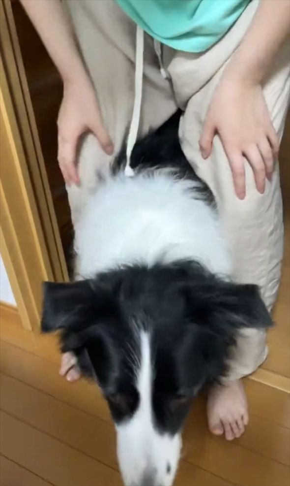 3. ボーダーコリーが罠にかかった!?飼い主さんの足に挟まれて嬉しそう!!「つかまっちゃった!」「嬉しそうな顔」