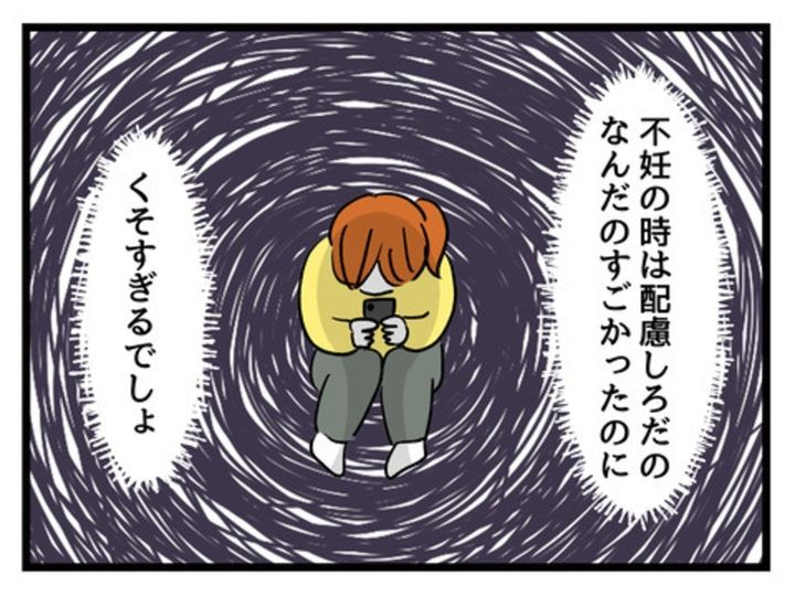 かつて、自分が「不妊治療を進める側」だったころ、キリコさんは「妊娠したこと」や「妊婦さん」、「小さい子連れの母子」などを目の敵にする勢いでいました。街でそうした看板を見つけたり、マタニティマークを見ただけで、夫や当事者に当たり散らすことも…。