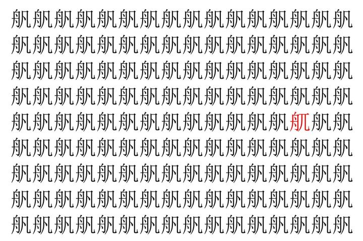 画像の中には、「舤」という漢字が縦に9行、横に16個並んでいます。 全部で144個となりますが・・・、そのうち1つは「異なる漢字」となってますよ!!