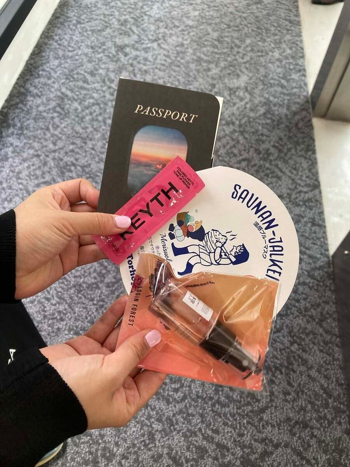 向かって左の白いパッケージのものはサンクリーム。パッケージを開けるとオレンジ色のバームが! 済州産の発酵コンブチャエキス配合で肌をやさしくケア。ブルーのボトルはレモングラスの香りの日焼けオイル。色づかいも洒落てる!